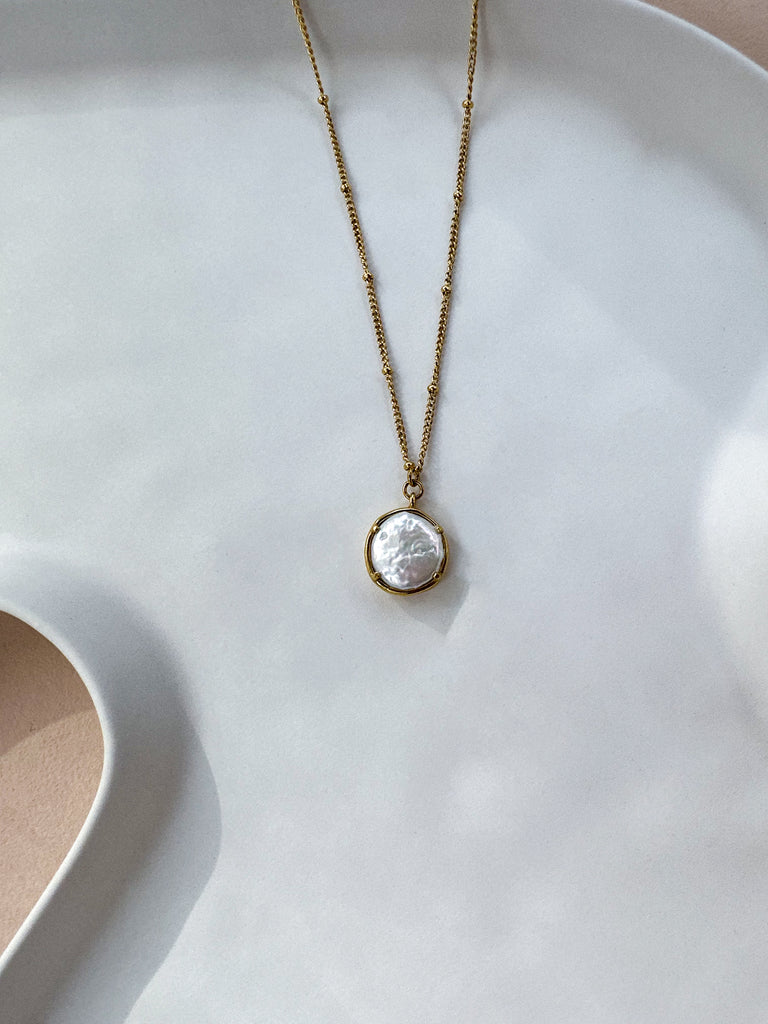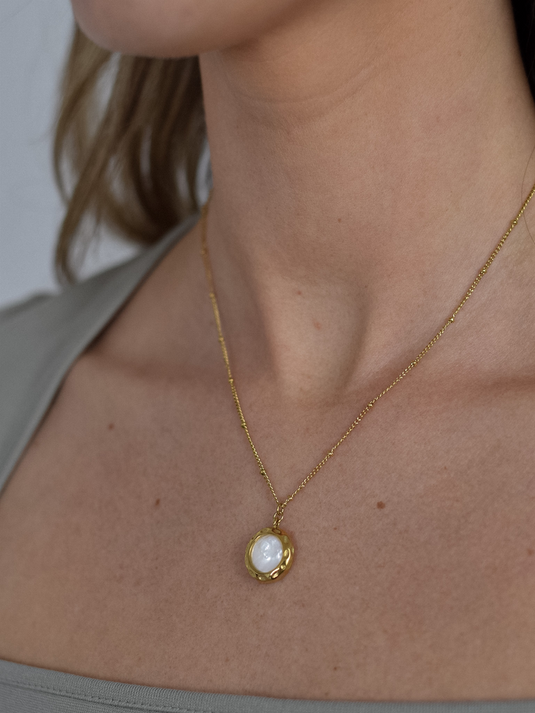 Hochwertige Halskette aus 316L Edelstahl, mit echter 18 Karat Vergoldung und bestückt mit edler Perlmuschel