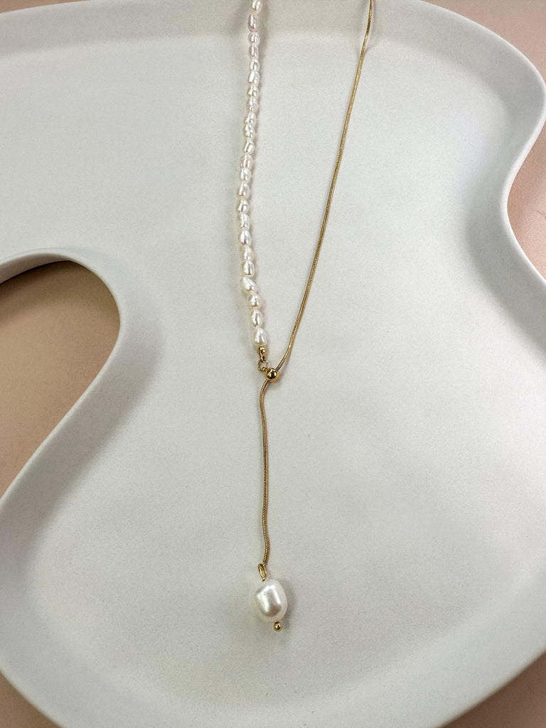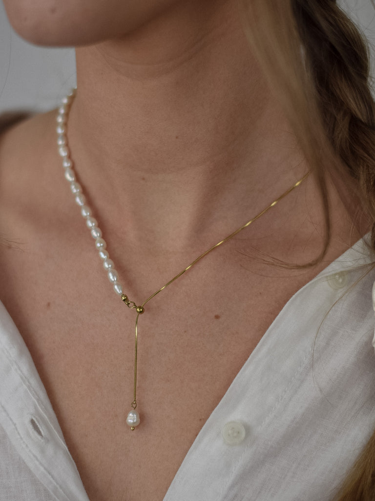 Hochwertige Halskette aus 316L Edelstahl, überzogen mit edler 18 Karat Vergoldung und bestückt mit echten Süßwasserperlen
