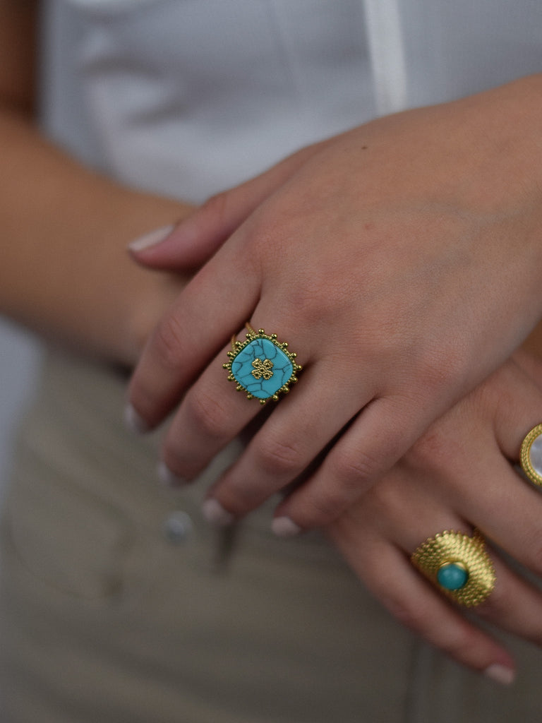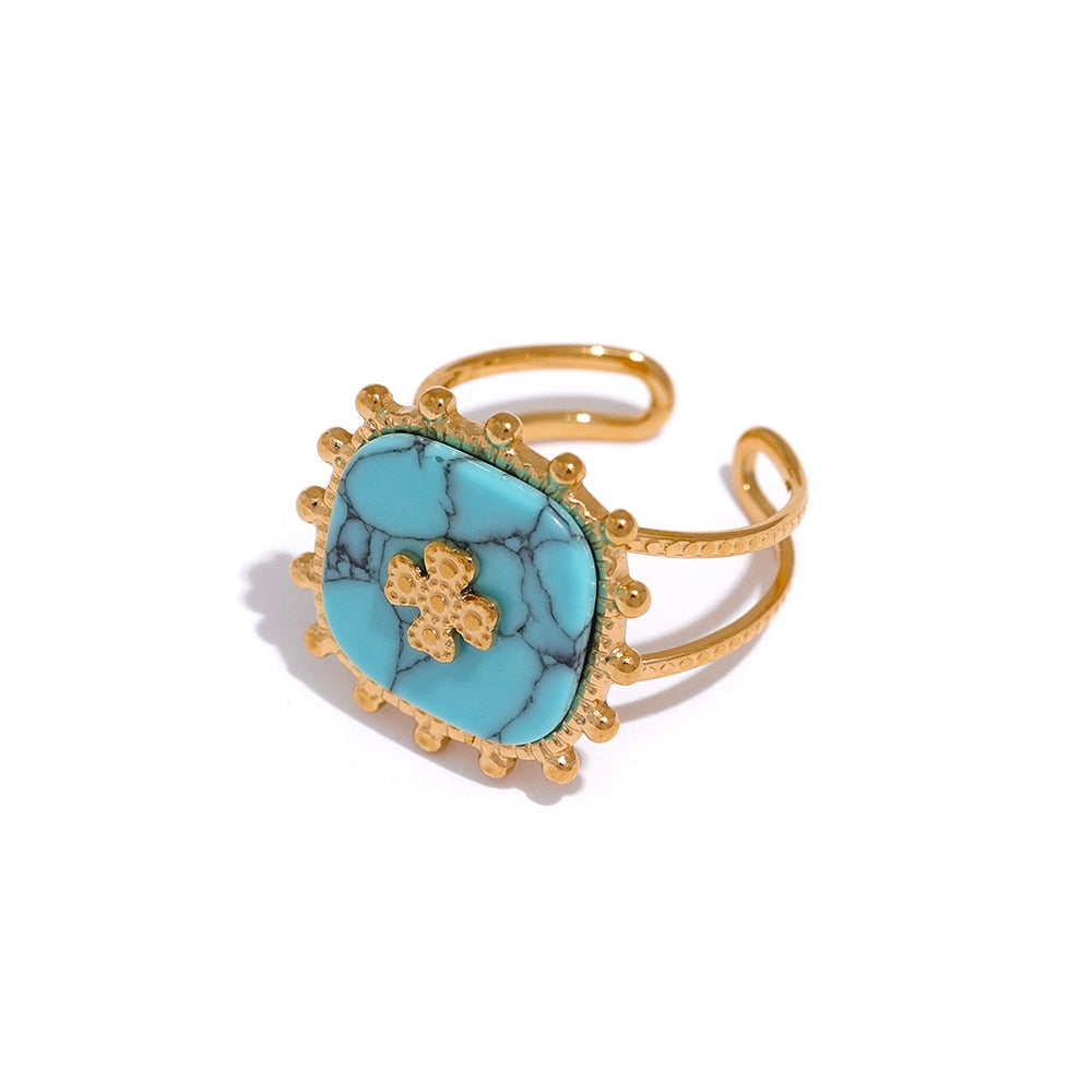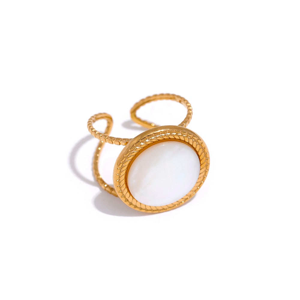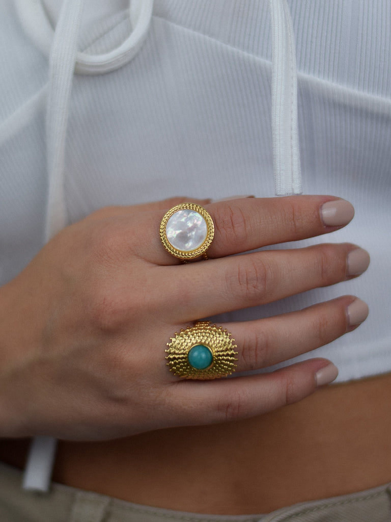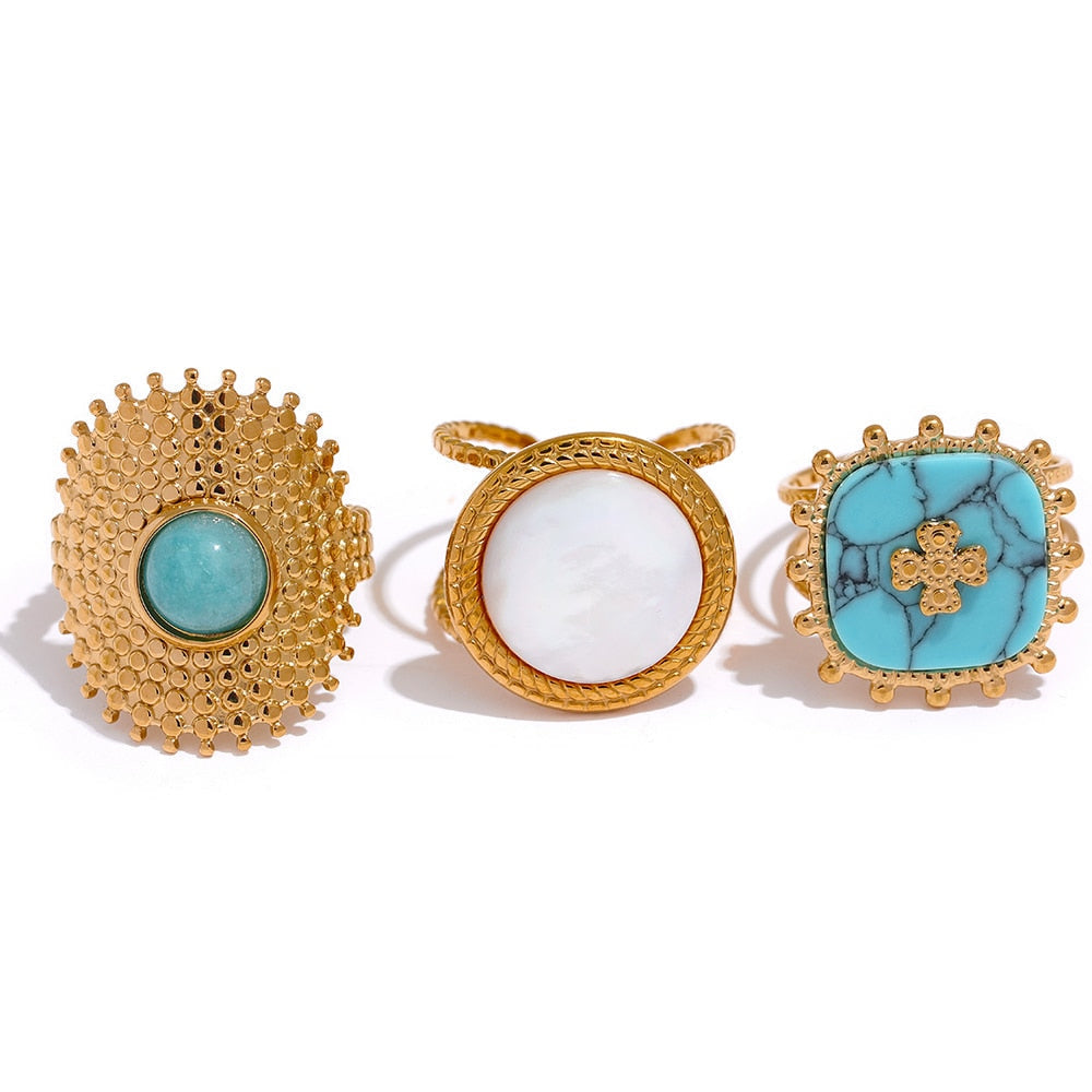 Hochwertige 316L Edelstahlringe mit 18K Vergoldung und bestückt mit edlem Perlmuschel und Naturstein
