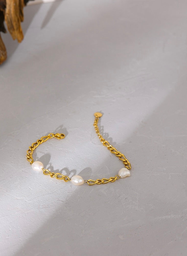 Hochwertiges Armband aus 316L Edelstahl, überzogen mit echter 18 Karat Vergoldung und bestückt mit echten Süßwasserperlen