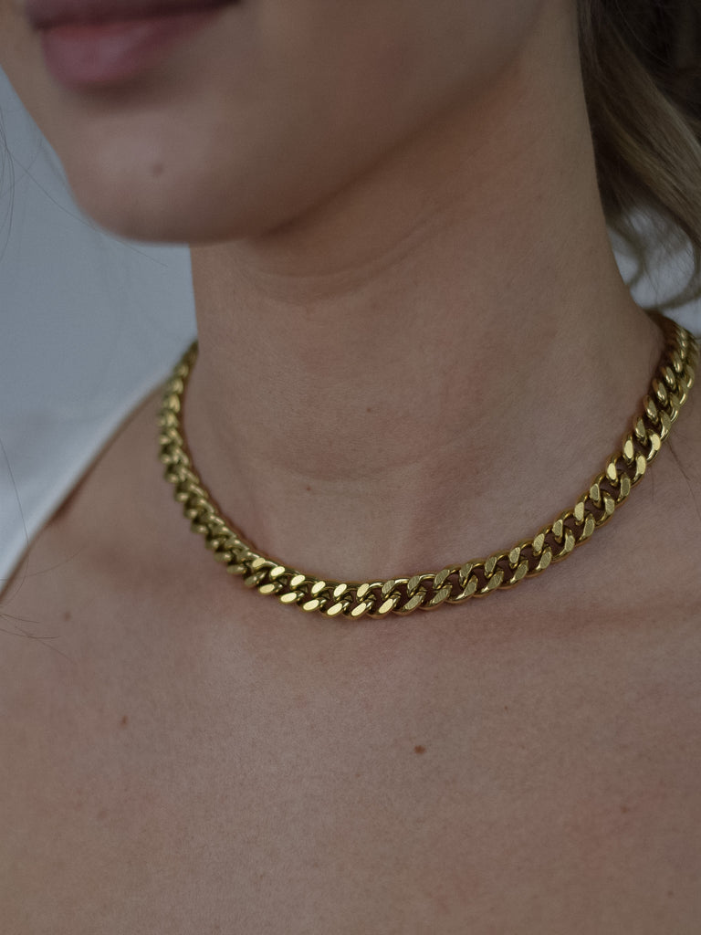 Hochwertige Choker Gliederkette aus 316L Edelstahl mit edler 18 Karat Vergoldung bei der Farbe "Gold"