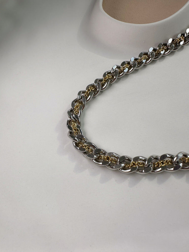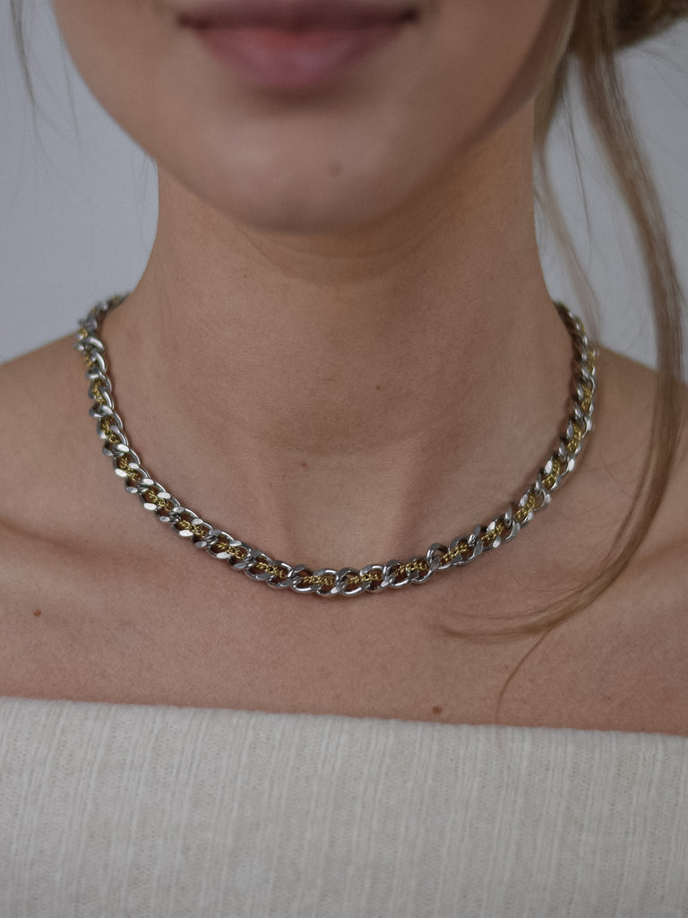 Hochwertige Halskette aus 316L Edelstahl, durchzogen mit echt vergoldeter Ankerkette