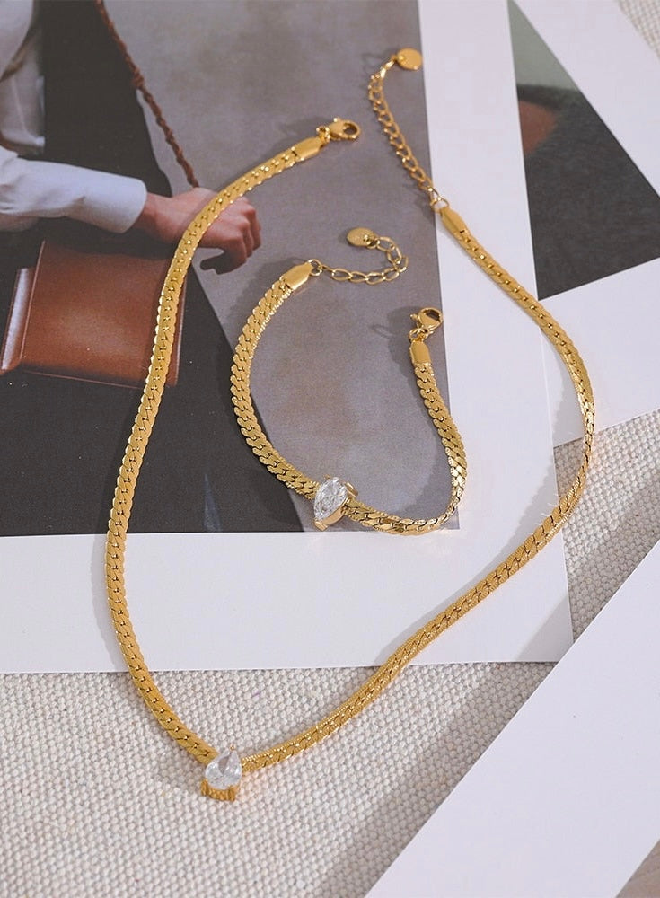 Hochwertiges, flaches Anker-Armband oder Halskette aus makellosem 316L Edelstahl, einem mit Zirkon bestücktem Anhänger und einer edlen 18 Karat Vergoldung