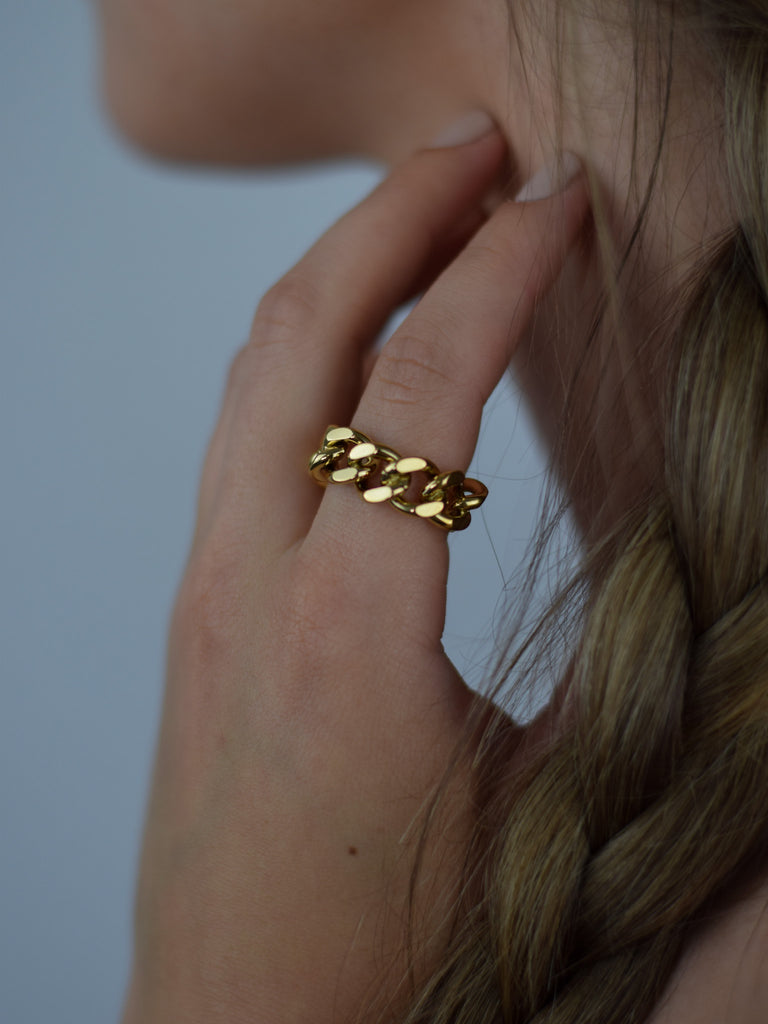 Hochwertiger Ankerketten-Ring aus 316L Edelstahl, mit edler 18 Karat Vergoldung
