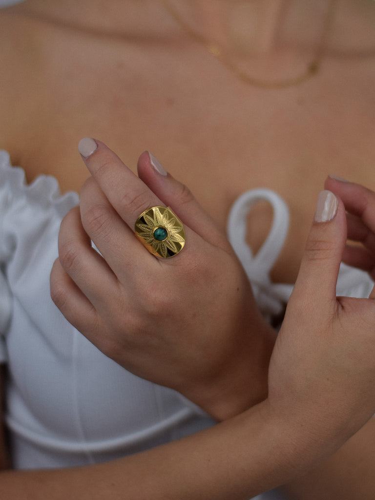 Hochwertiger Ring aus 316L Edelstahl, ummantelt mit echter 18 Karat Vergoldung und beschmückt mit edlem Naturstein