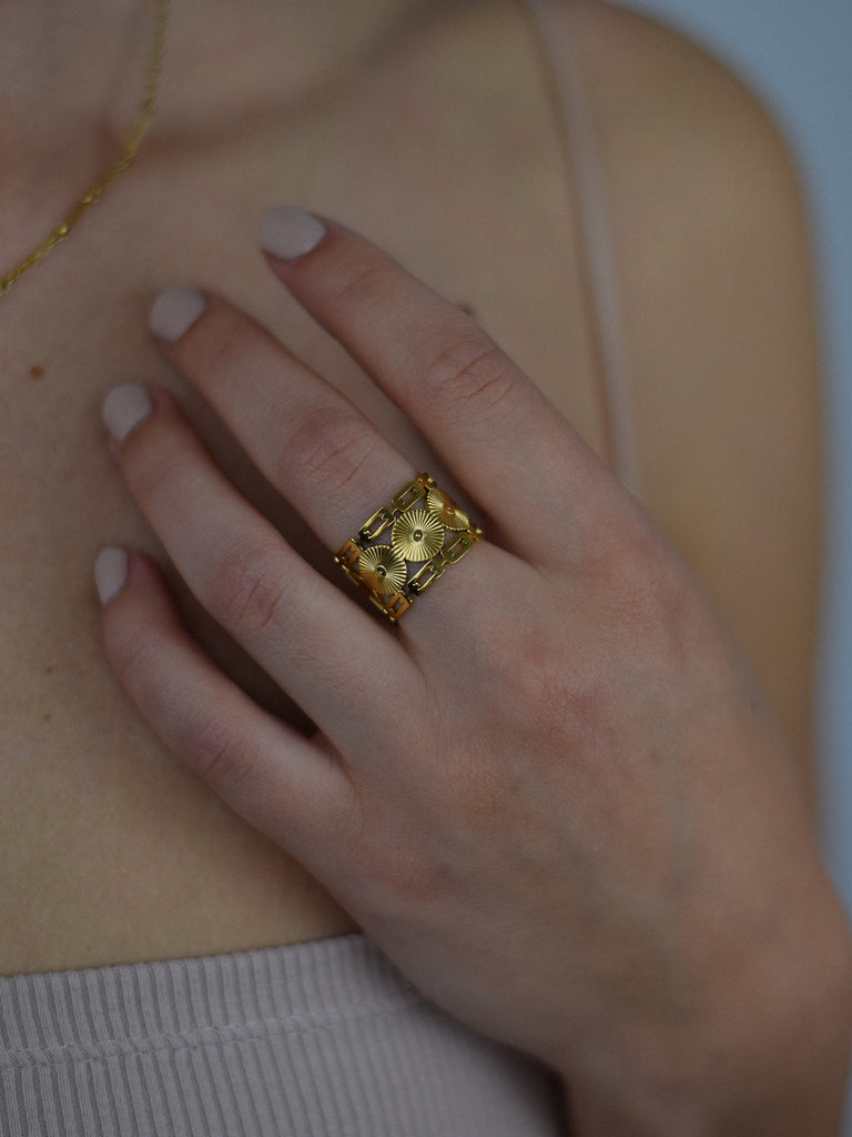 Hochwertiger Ring aus 316L Edelstahl, ummantelt mit echter 18 Karat Vergoldung und beschmückt mit edlem Naturstein